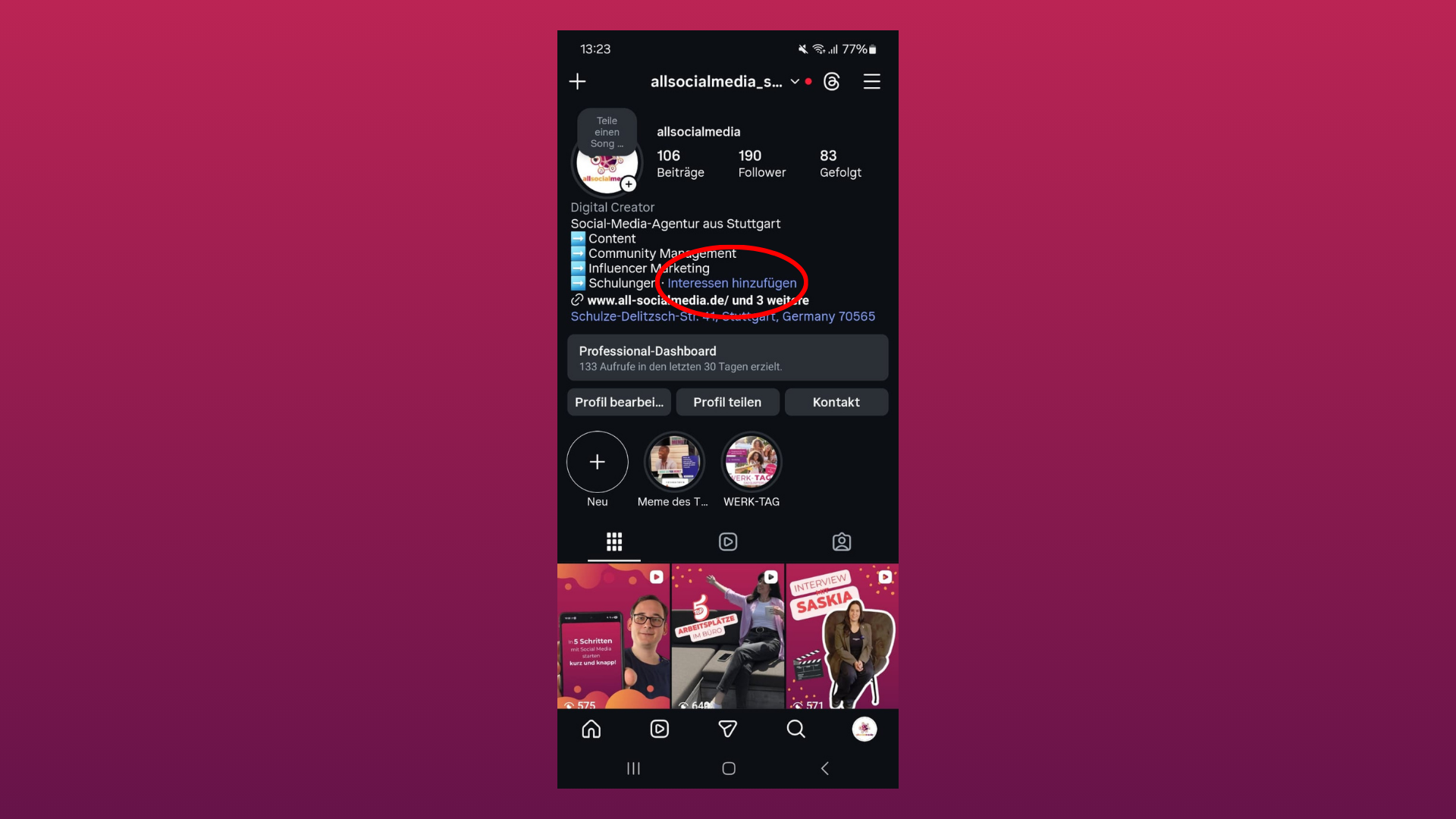 Offenbar erweitert Instagram seine Profilansicht um eine neue Funktion. In einigen Accounts ist im Bio-Bereich bereits die Option „Interessen hinzufügen“ sichtbar.